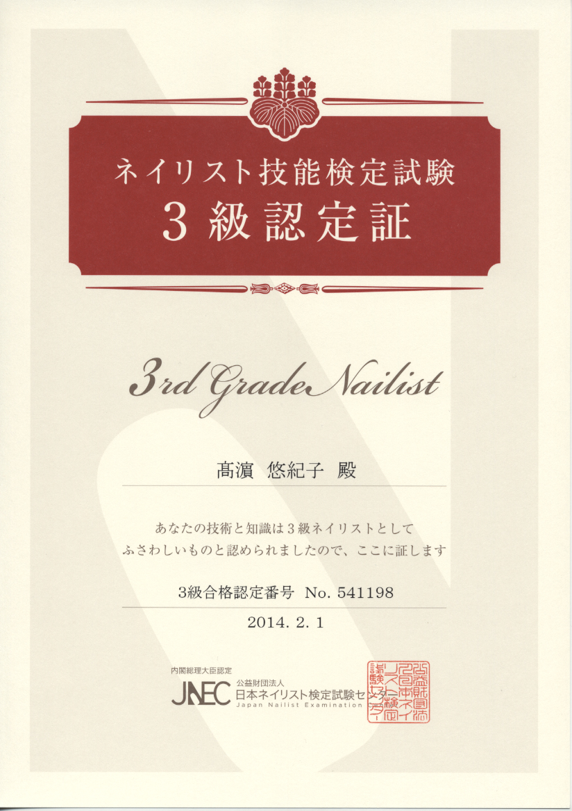 JNECネイリスト検定3級(単科)