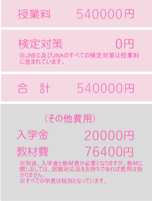 このコースでは、JNAネイルサロン衛生管理士講習費は無料となっています。